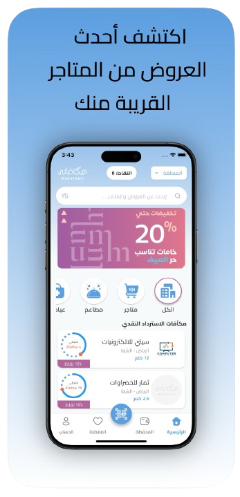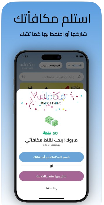 تعمل منصة مكافاتي على توفير العروض التوفيرية لصالح عملاء قطاع الاعمال وتهدف المنصة لمساعدة مختلف الانشطة التجارية في تنمية أعمالها وتمكن العملاء من استكشاف مجموعة من العروض المتنوعة لدى العديد من العلامات التجارية الوطنية.